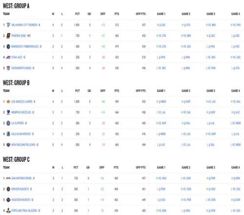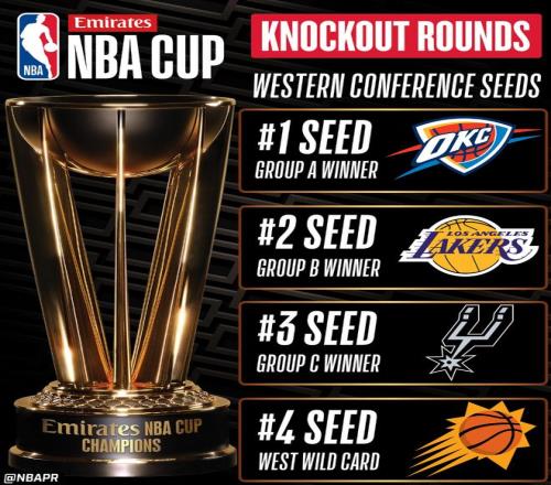 北京时间11月29日,NBA杯赛小组赛最后一个比赛日结束,八强全部产生,西区:雷霆、太阳、湖人、马刺;东区:魔术、热火、猛龙、尼克斯。